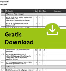 Stabile Regale verwenden, Tragfähigkeitsangaben beachten, Anfahrschutz vorsehen und mindestens wöchentlich durch einen RegalChecker inspizieren lassen.