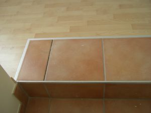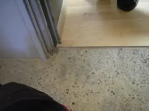 Abb. 4: Parkettboden grenzt an eine mit Fliesen belegte Treppe