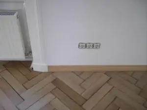 Abb. 2: Ein bei einer Sanierung neu verlegter Parkettboden, deutlich ist der unterschiedliche Wandabstand bei der Fußleiste zu erkennen