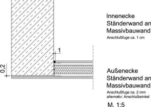 - starrer angespachtelter Anschluss zwischen Trockenbaukonstruktionen