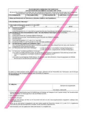 Auszug aus Abschnitt 9.1.3 ADR Zulassungsbescheinigung