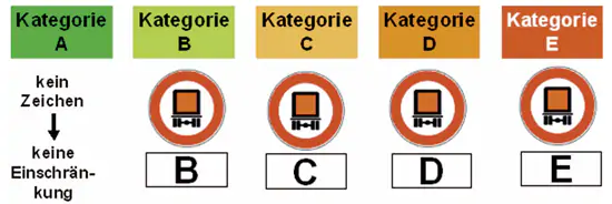 Generell gilt, je höher die Tunnelkategorie, desto strenger die Beschränkung für transportierte Güter. Die Tunnelkategorie „A“ bedeutet, dass keine Beschränkung für die Beförderung gefährlicher Güter besteht, deshalb kann auf diese Kennzeichnung verzichtet werden.