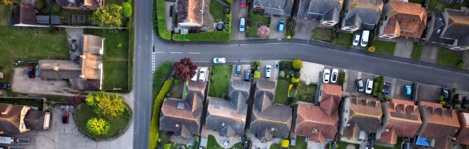 Drohnenflug über ein Neubaugebiet